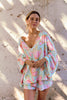 El pijama Short Bombay Tulipa es un fit que fue diseñado para la comodidad. Además de ser muy versátil, Bombay tiene un corte relajado y vaporoso. El top tiene escote en v, sin botones y escotado . Los shorts tienen corte relajado y recto con elástico en la cintura y amarra de ajuste. Es un pijama ligero y con un efecto de caída espectacular. Basado en nuestro pijama BOMBAY PANTS, ahora en shorts!! Con un estampado floral en tonos celestes y rosado, hará resaltar tu color de piel este verano.